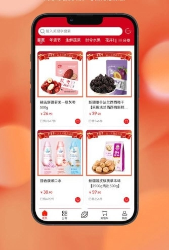 2、首页搜索框输入商品关键词,或通过分类导航浏览