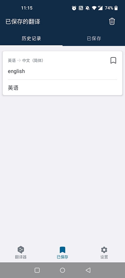 3、接下来可以在“已保存”功能栏中找到之前翻译好的英文内容。
