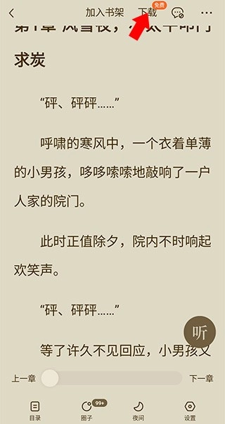 1、首先打开番茄小说应用,进入主页面后点击“书城”。接着挑选你想收听的小说,进入小说阅读界面,点击页面中间偏下的区域(大概是红框标注的位置),就能弹出操作菜单了。