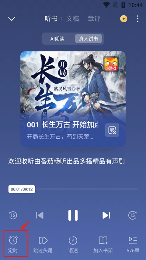 2、用户在听书页面选择“定时”按钮。