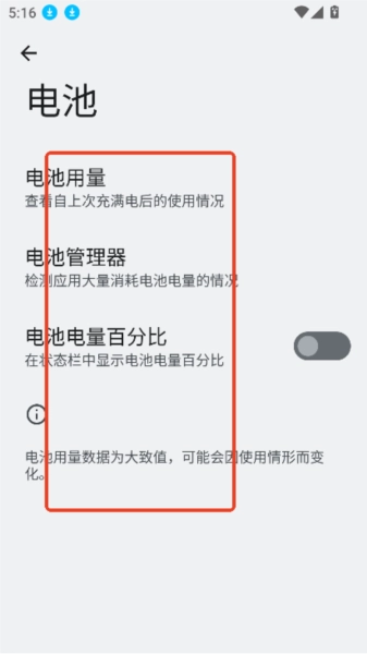 例如进入电池界面,可以唤醒更多电池功能