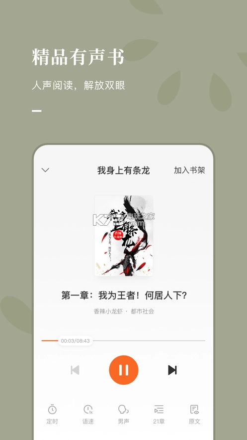 这里的每一本书都支持听书功能,你阅读时眼睛可以随时放松片刻。