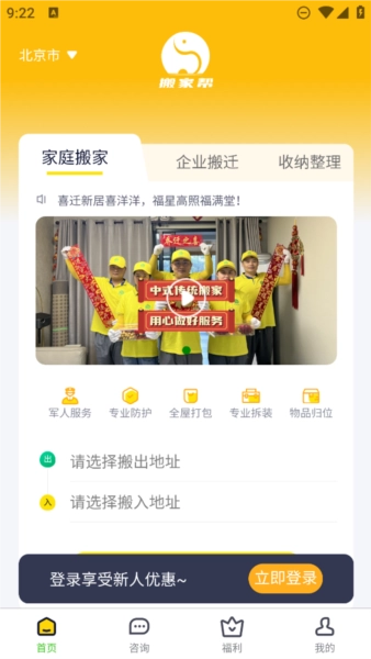 搬家帮是专注于搬家领域的专业服务平台,秉持高效便捷的服务理念,成为众多家庭与企业的优先选择。无论您是跨城市的长途搬家,还是同城内的短途搬迁,我们都能提供一站式解决方案。搬家帮,以专业服务让您全程无忧。此外,搬家帮也是一款全新实用的同城搬家软件,用户可在其中体验全面且高效的搬家服务,享受便捷轻松的搬家过程。软件具备多种功能,提供多种搬家方式,欢迎有需求的用户前来体验!