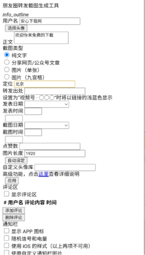 7、个性化设置:用户可点击相关按钮,自定义点赞数、评论内容、用户头像等元素,从而生成独具特色的截图。
