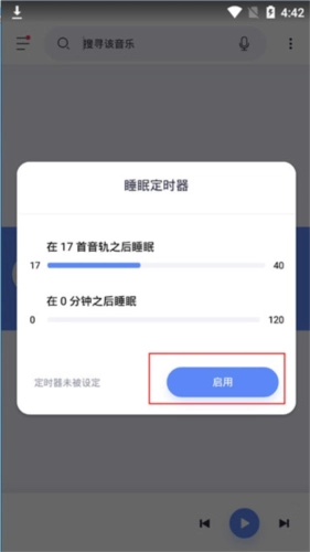 睡眠定时功能。可将睡眠定时设置为特定数量的曲目或分钟数。