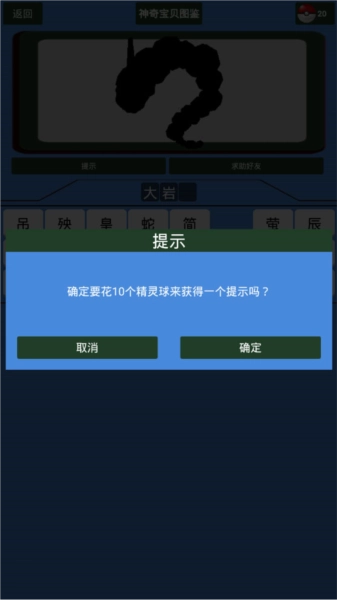 4、要是猜不出来,可以花费10个精灵球获取提示。