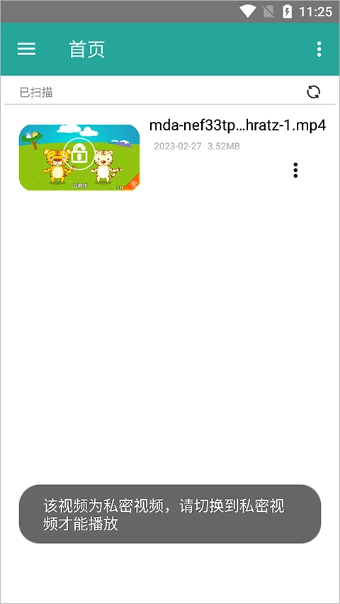 4、用户后续若需播放该视频,将无法直接进行播放操作,需切换至私密视频板块,并输入手势密码后方可播放。