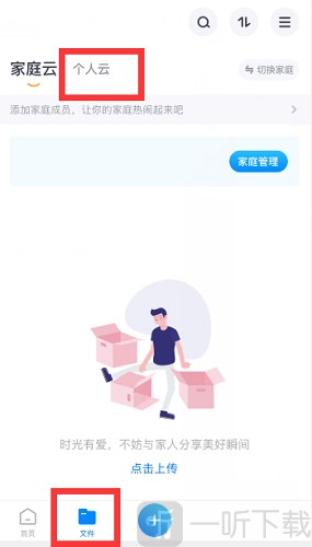 打开天翼云盘,点击底部“文件”,点击“个人云”