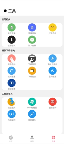 包涵各种实用的音乐工具,还提供全网音乐搜索以及音质设置。