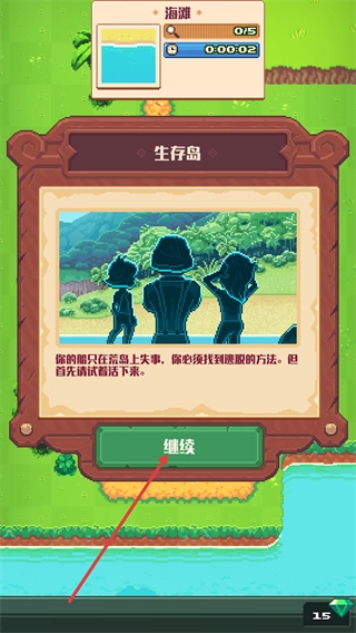 1、阅读【生存岛】的背景说明后,点击【继续】按钮,进入角色选择与场景界面。