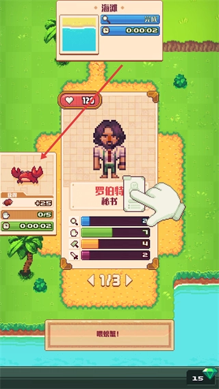 4、当获取到【螃蟹】道具后,点击界面上的【喂螃蟹!】按钮,就能使用该道具来完成相应的交互操作。