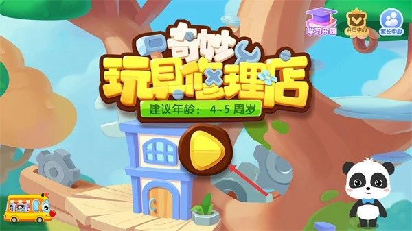 1、在“奇妙玩具修理店”的启动页面,点击黄色的开始按钮,即可进入对应的修理操作界面。