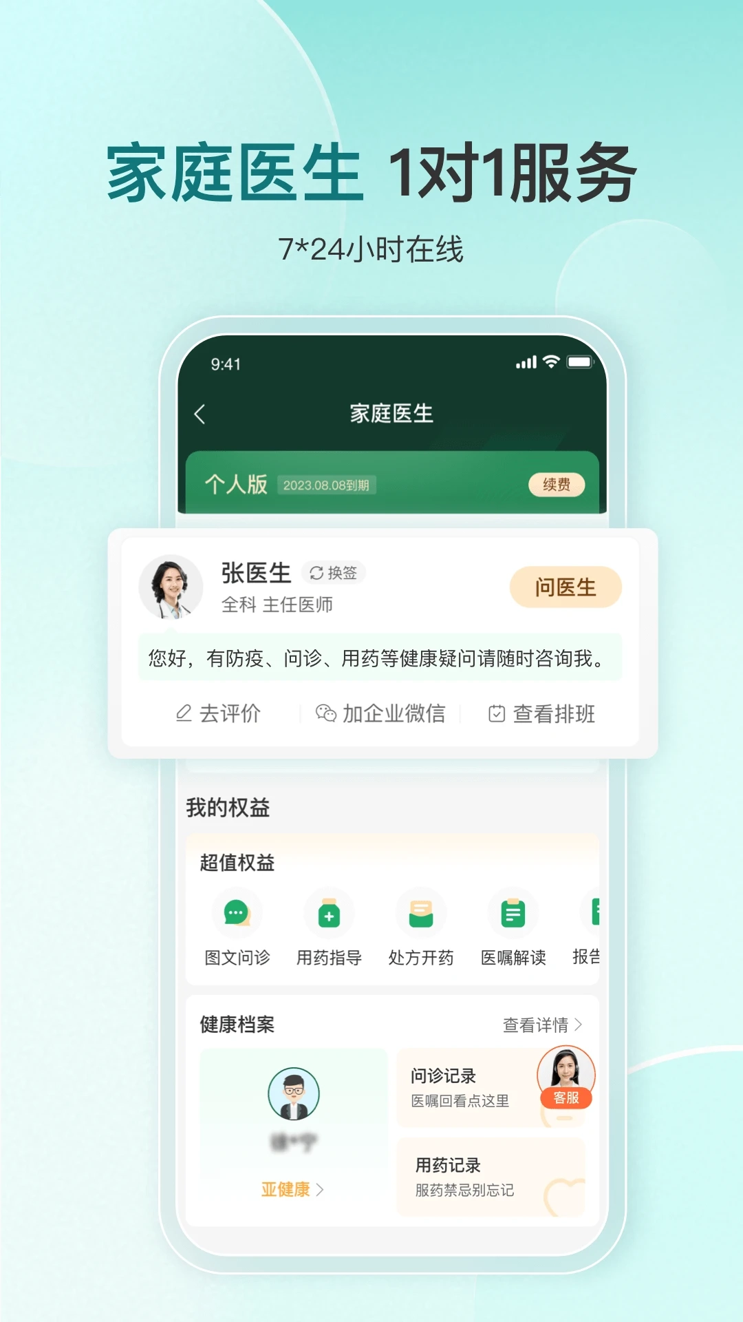 4、在线问诊服务:支持图文、语音沟通形式,提供一对一专属咨询,由专业医生为您维护健康档案,全方位守护您和家人的健康。
