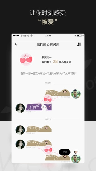 在里选择一个友人进行配对邀请,对方在并通过邀请后即为配对成功。可以通过轻敲2下首饰向对方发送一个代表爱的“totwoo”密码,表达您此刻的心情,比如我想你、我爱你、吻你、对不起。对方收到时首饰会闪光并振动。若一方没有首饰,也能通过totwoo 发送或接收totwoo。