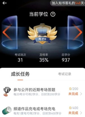 用户可以在平台内通过积极答题积累学分,这些学分能用来提升学位等级,从最初的白丁逐步晋升到最高的状元。每次学位等级提升时,用户都能获得相应的道具奖励和股权值激励。