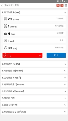 加工计算器本是一款专注于海纳金属铣削加工的计算器应用。它提供丰富的加工计算公式,涵盖钻孔、铣削、车削等多种计算功能,旨在解决加工过程中的各类问题,让金属铣削加工更便捷高效。这款海纳金属铣削加工计算器不仅具备车削、铣削、钻孔等加工计算功能,还包含多种加工计算公式,能满足用户在加工过程中的多样化需求。