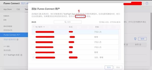 第9步:在这一步点击“添加”按钮后,系统会再次发送邮件;被邀请者可从邮件里获取邀请码,然后将其填入TestFlight即可。