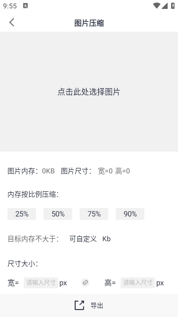 3、图片压缩:支持比例压缩与自定义压缩,提供丰富的压缩自定义选项,在内存压缩的同时,还可同步调整长宽像素;