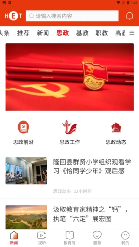 用户可以进入视听主页,通过观看视频来了解更多教育资讯新闻内容。