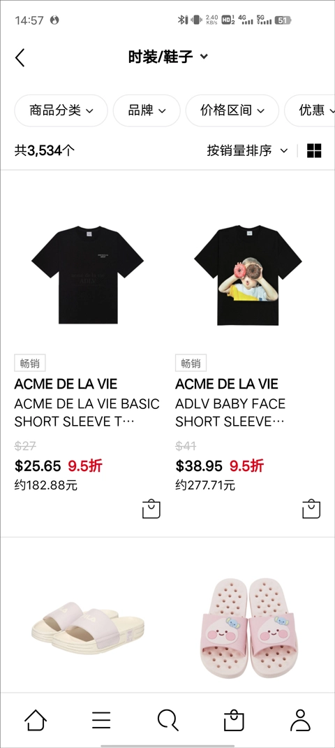 4、接着点击左下角的“三”按钮,用户就能选择想要购买的商品分类,例如时装或者鞋子。