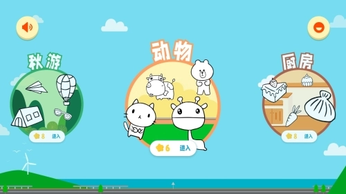 3、进入后会呈现画板状态,不过只有未填色的图案,用户需要借助右侧工具,为它填上自己想象中的颜色。