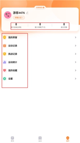 4、点击“我的”,即可查看个人的各类信息,比如累计运动时长、累计消耗热量、累计运动天数等。