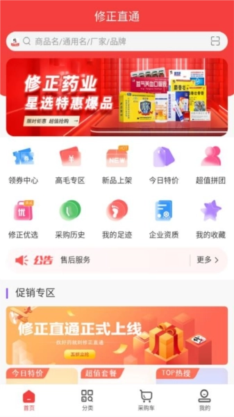 3、本平台归属于修正药业集团,是众多用户正在使用的医药平台。