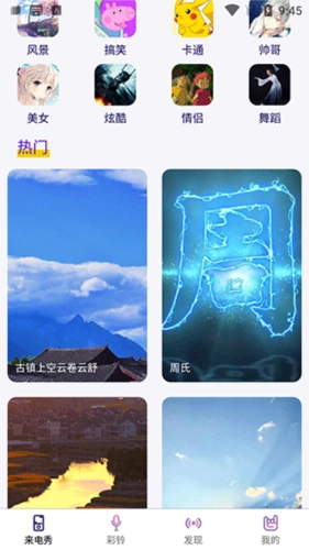 秀来电彩铃为用户提供了丰富多样的来电秀,海量曲库任你挑选,你可以定制专属的电话铃声,还能更换对应的主题和背景,让你更显时尚,尽享唯美高清的日常体验。在这里,各类秀来电彩铃应有尽有。同时,平台还准备了多种类型的来电铃声,比如抖音热歌、网络流行曲、怀旧经典老歌等,总有一款适合你,为你带来与众不同的来电感受,能够满足广大用户的多样需求。