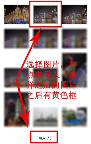 2、选取图片,点击“导入”按钮(选中图片后会出现黄色框)