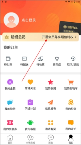 1、打开掌上靖安首页,点击【我的】选项;进入个人中心界面后,点击【超级会员】按钮。