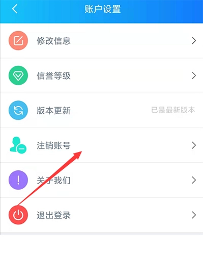 2.点击选择注销账号栏目即可