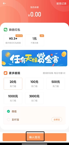 2、用户积攒到一定额度后即可提现,点击确认提现按钮操作即可。