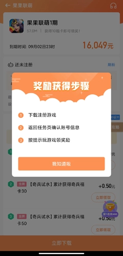 2、用户点击进入后,会直接弹出获取奖励的步骤说明,按照这些步骤操作就能直接赚钱。