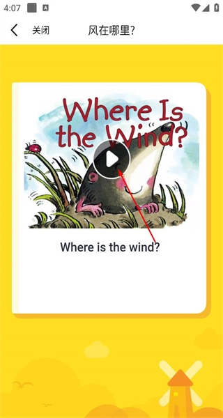 2、进入《风在哪里》绘本学习页面后,点击播放按钮,即可开始学习该绘本的英语内容,助力提升英语能力。
