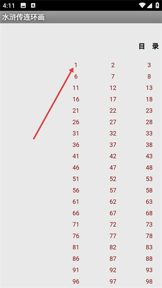 2、在【目录】页面点击对应的页码数字,就能直接跳转到该页的连环画内容,方便快速定位并阅读相应章节。