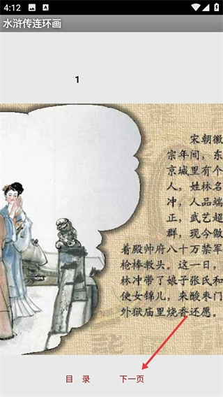 3、进入单页阅读界面后,点击底部的【下一页】按钮,就能切换到后面的连环画内容,继续阅读剧情。