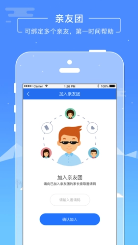 【亲友团】视障人士的亲友们可以绑定多个亲友到同一个视障人士名下,当视障人士发起求助呼叫时,亲友能第一时间收到通知。这样一来,亲友们就多了一个得力的助手。