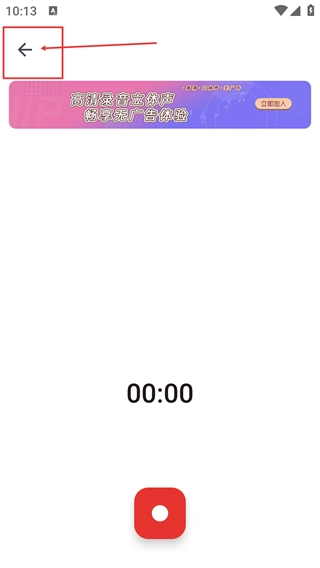 1、在录音界面中,点击底部的红色按钮就能开启录音功能,而点击左上角的【返回】箭头则可以退出当前页面。
