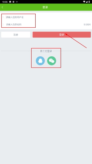 3、在登录界面中,用户既可以填写【请输入您的用户名】和【请输入您的密码】后点击【登录】按钮,也能够选择第三方快捷登录方式。