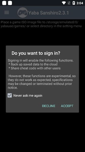 文件夹的路径由"/sdcard/yabause/games/"变更为"/sdcard/Android/data/org.devmiyax.yabasanshioro2.pro/files/yabause/games/"
