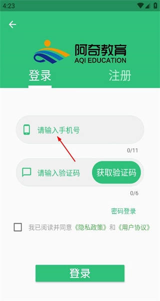 4、进入登录界面后,找到“请输入号”输入框,点击该输入框,填写号码,完成登录操作。
