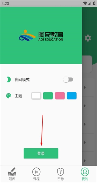 3、在展开的侧边功能栏中找到绿色的登录按钮,点击此按钮即可跳转至账号登录的操作界面。