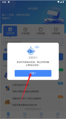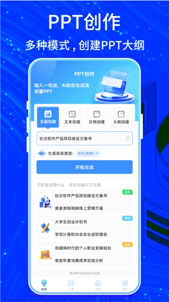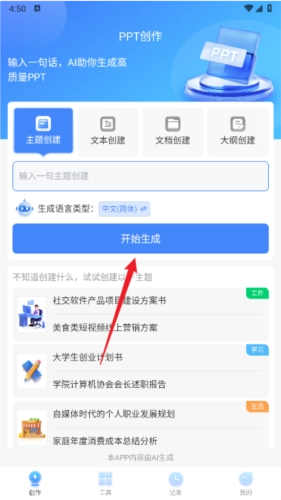 1、一键生成:只需输入主题内容,即可一键生成高质量的PPT。