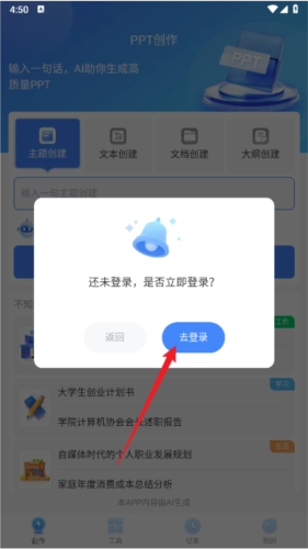 3、TomePPT作为一款融合AI技术的办公类PPT软件,能够在一分钟内为用户生成PPT,通过AI撰写大纲、AI进行排版、AI搭配色彩等功能,从多方面助力用户攻克PPT制作过程中的各类难题。