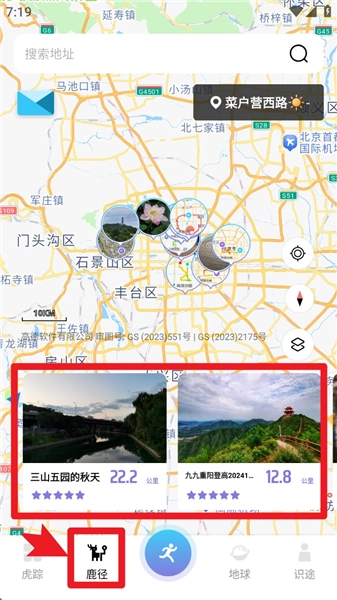4.切换至“鹿径”页签,即可查看特色路线,包括热门步道、景区路径等相关信息以及对应的里程数据。