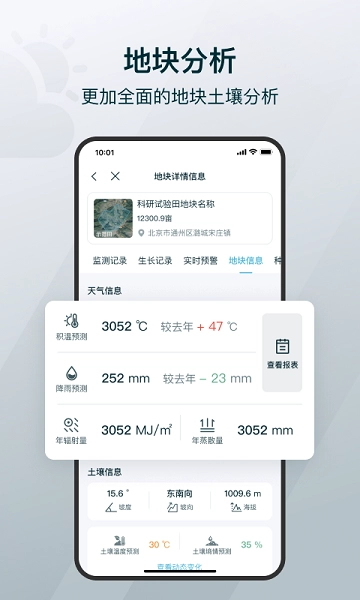 1、对地块土壤信息进行清晰且全面的分析,呈现出明确的监测记录、生长记录以及地块信息等内容。