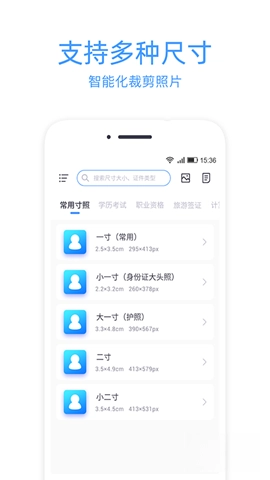 包括一寸照、二寸照、四六级报名照、签证照等。