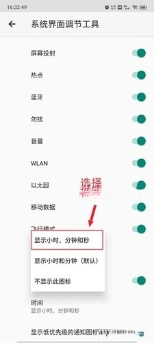 8、最后,在时间设置里选择“显示小时、分钟和秒”,就能完成相关操作了。