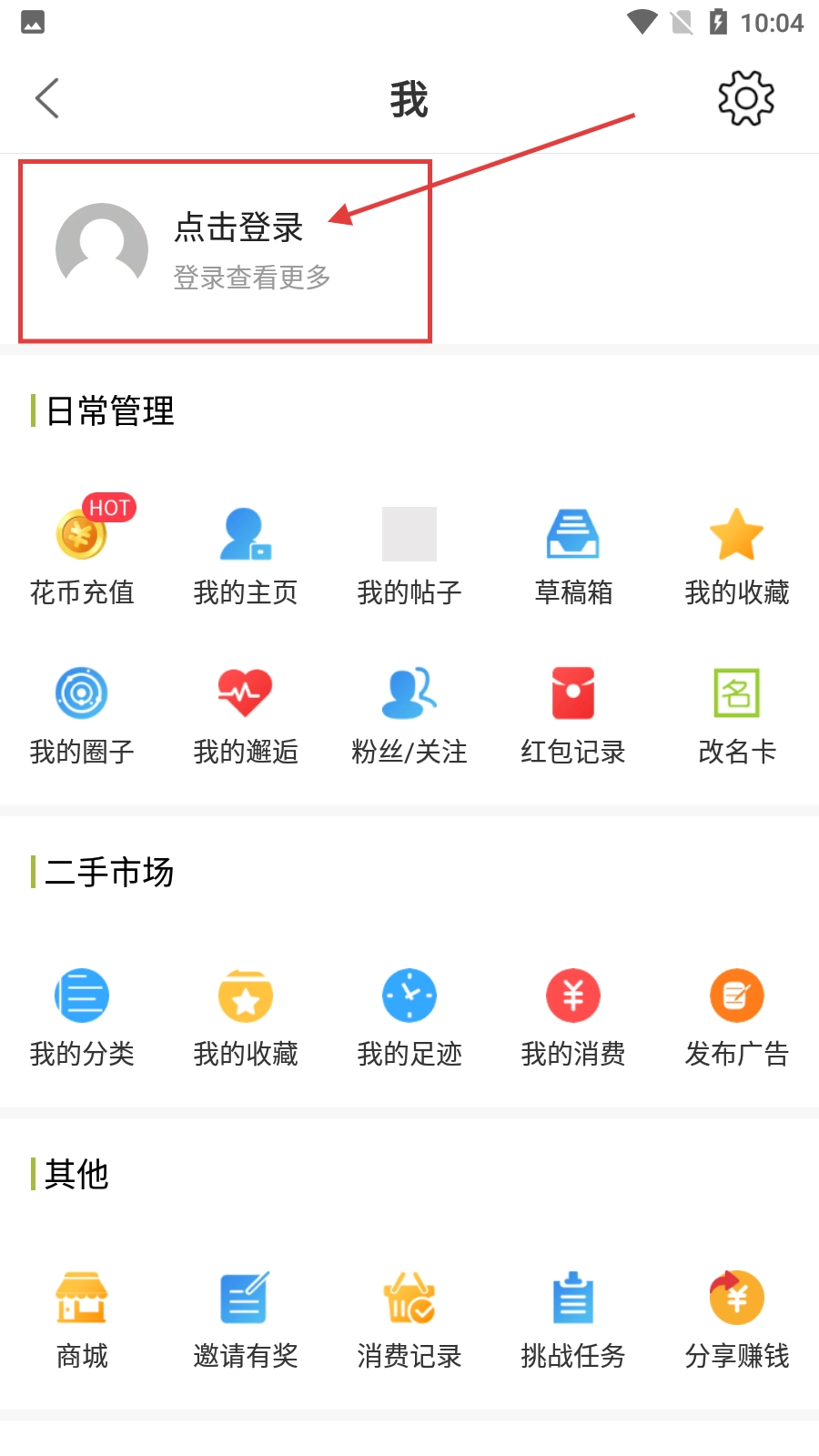 2、进入个人中心页面后,如果需要登录账号,点击【点击登录】区域,就能进入登录页面。