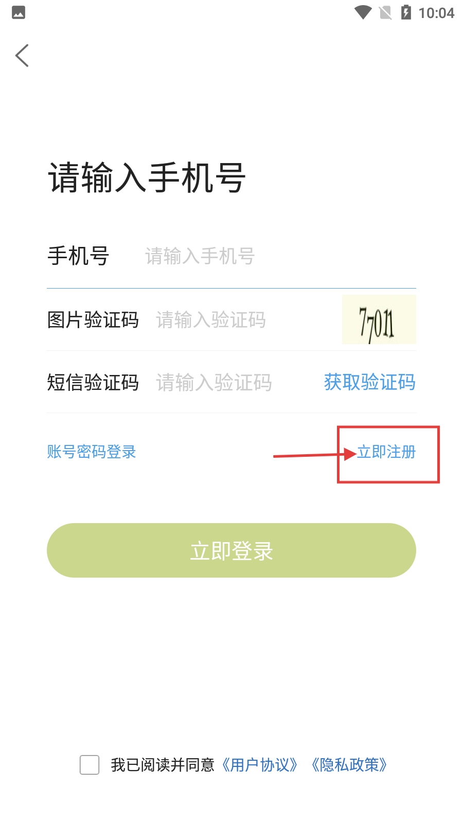 3、点击【立即注册】按钮,进入注册流程,依次输入账号、图片验证码、短信验证码,勾选同意协议后即可完成注册。
